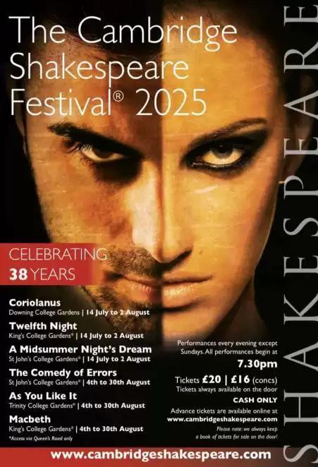 《第十二夜》是2025年在剑桥莎士比亚戏剧节(Cambridge Shakespeare Festival)中展演的六部作品莎士比亚经典剧作之一。该戏剧节由英国杰出作曲家、指挥家,著名音乐与戏剧研究者大卫·克里利(David Crilly)于1988年创办于英国剑桥, 距今已有近40年历史,每年夏季在国王学院、圣约翰学院、三一学院、唐宁学院等剑桥大学主要学院的院士花园里举办,表演季长达8周。