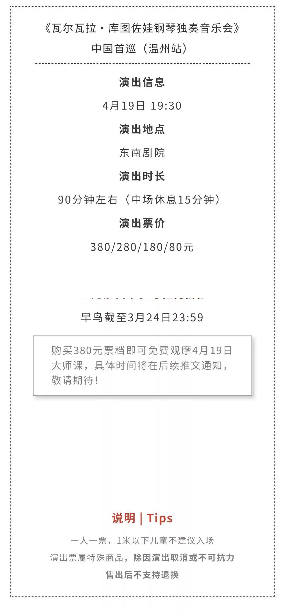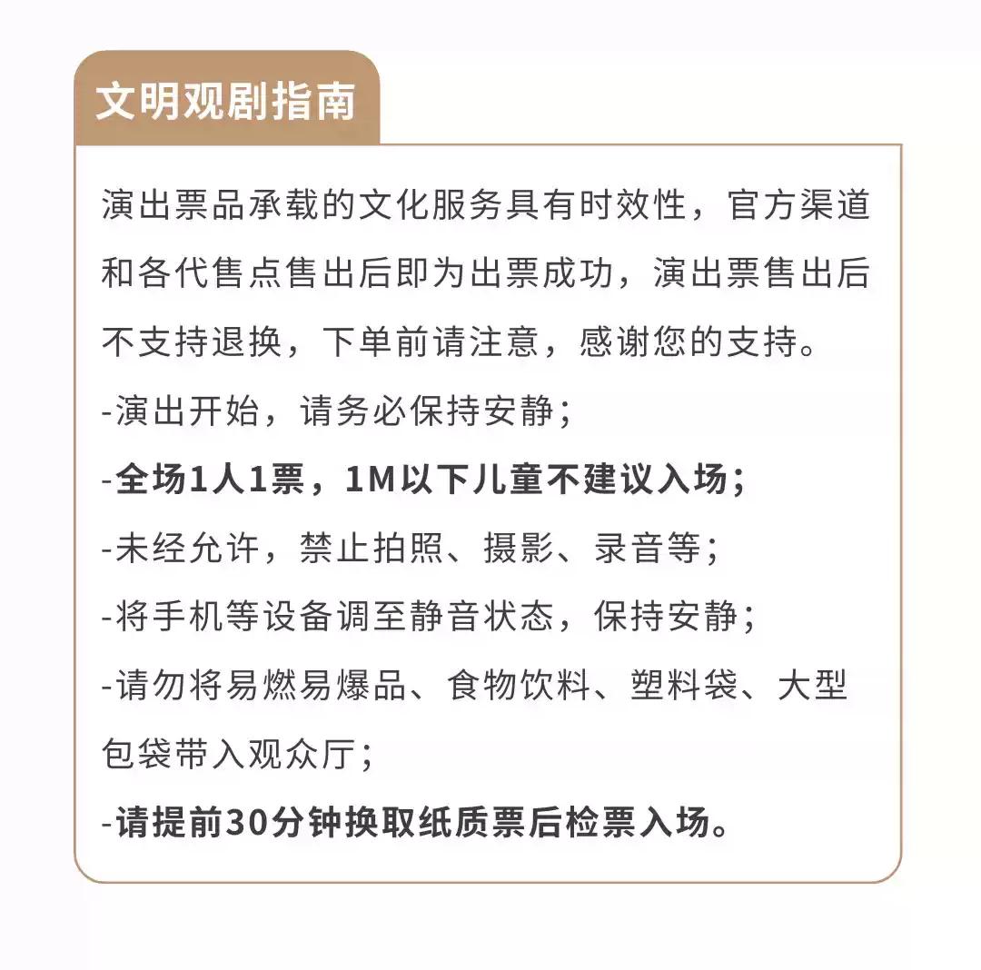 *请合理安排您的行程,购票时请确认演出时间、地点、座位及优惠信息,演出票一经售出,恕不退换。