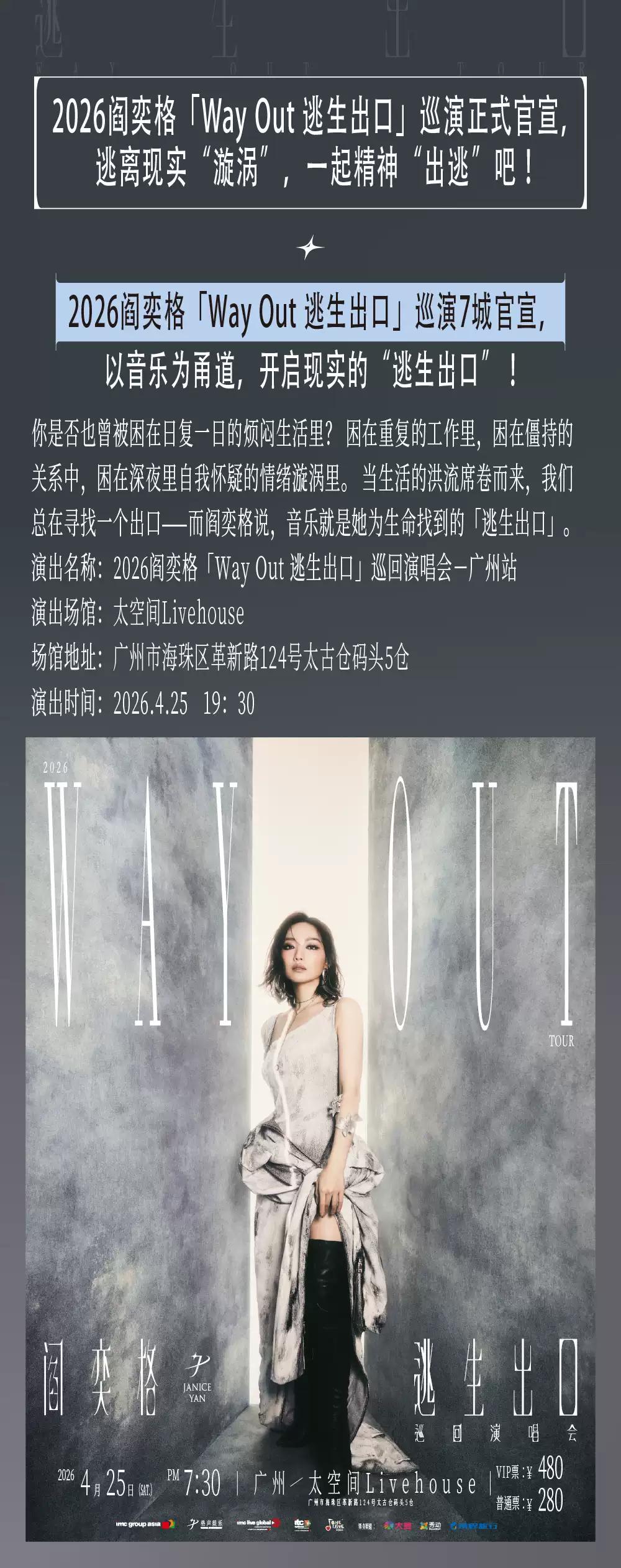 2026阎奕格「Way Out 逃生出口」巡回演唱会-广州站