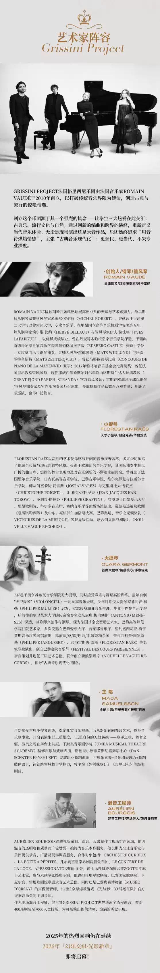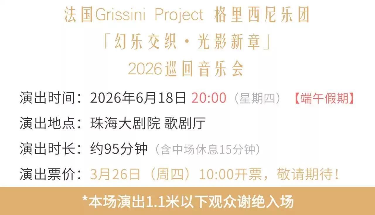 1、本场演出1.1米以下儿童谢绝入场,1.1米以上观众凭票入场。迟到观众请于曲目间进场。