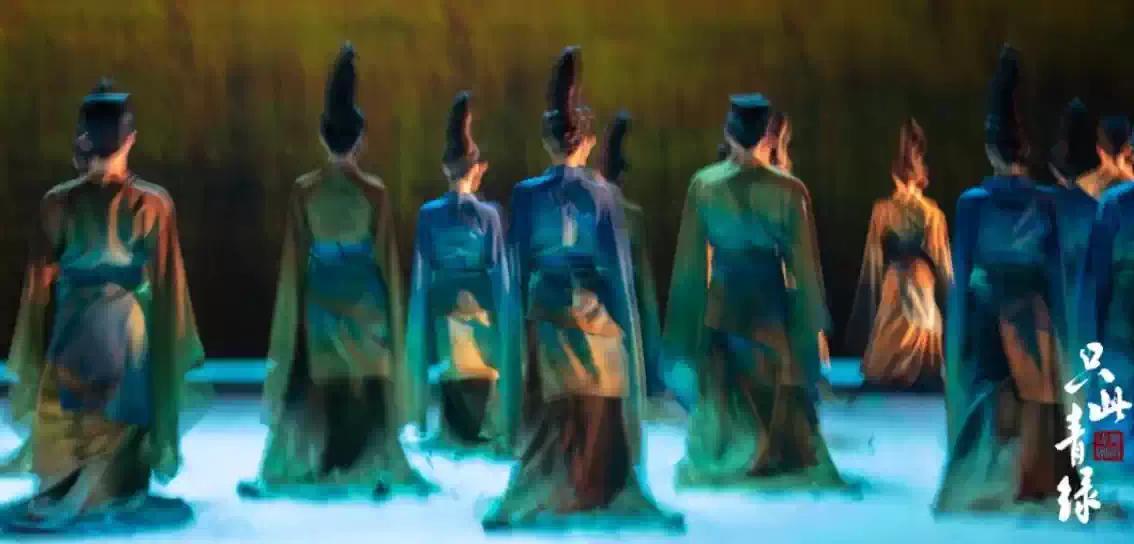 中国东方歌舞团青年编导周莉亚、韩真,经过不断探索,深入挖掘《千里江山图》背后的篆、绢、颜料、笔、墨等工艺与精神。巧妙地将“青绿”这一主题分为七个篇章——展卷、问篆、唱丝、寻石、习笔、淬墨、入画,将一幅历史人文的长卷徐徐展开。每个篇章都是对国之工匠精神的致敬,也是对传统文化的深刻诠释。