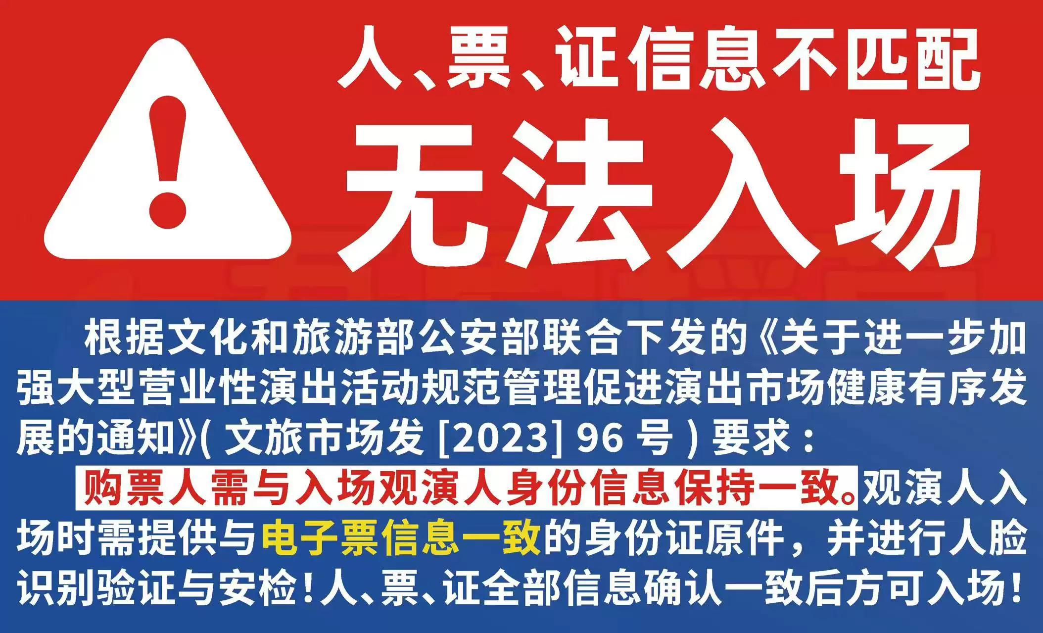 | 限购说明 | 每单限购4张 | 重复购票说明 | 同一位“实名观演人”请勿在多个售票平台重复购票,一位“实名观演人”的身份信息对应同场次的一张门票。 若同一位“实名观演人”被发现存在多个购票平台购买同场次行为,由该行为产生的无效重复订单、退票手续费、过期不可退票、无法入场等所有损失,均由购票人自行承担。 |