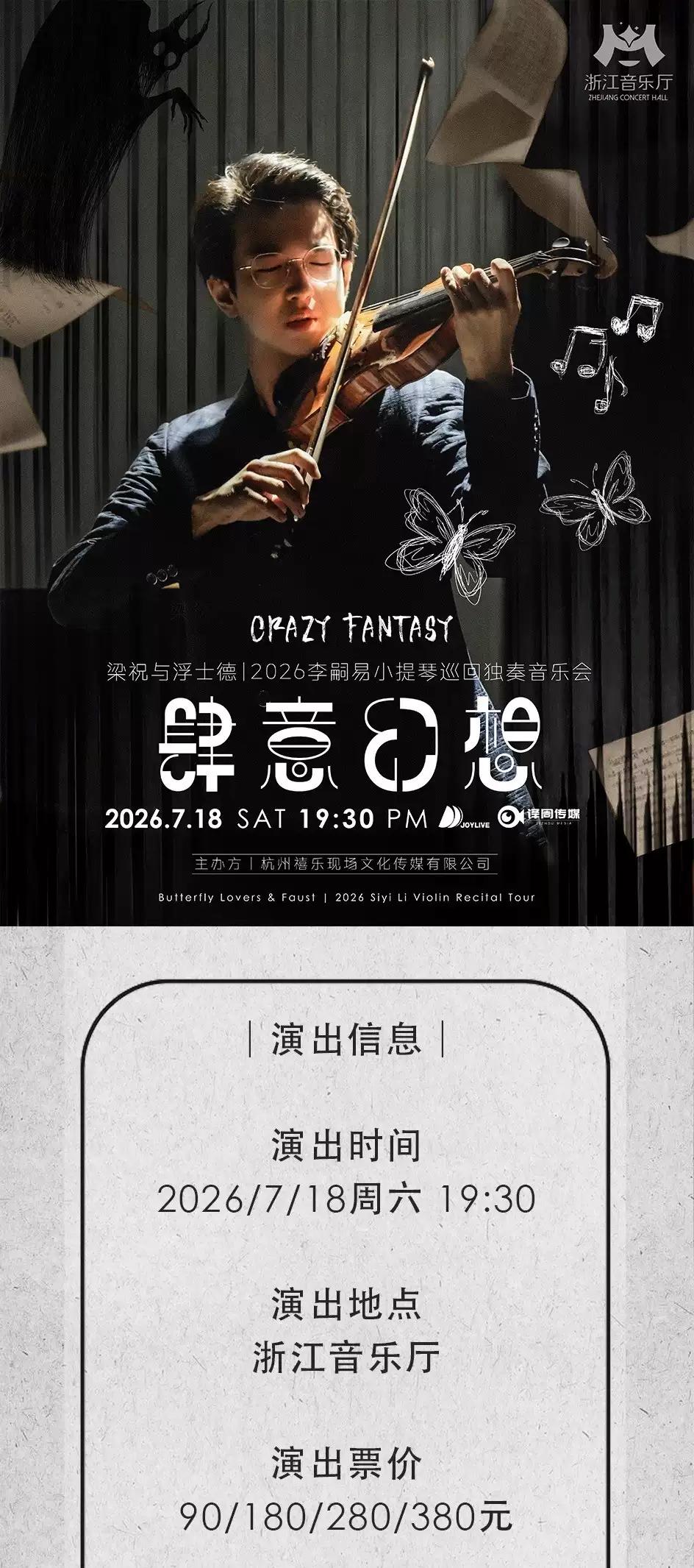 [杭州][买贵无忧]肆意幻想·梁祝与浮士德|2026李嗣易小提琴巡回独奏音乐会