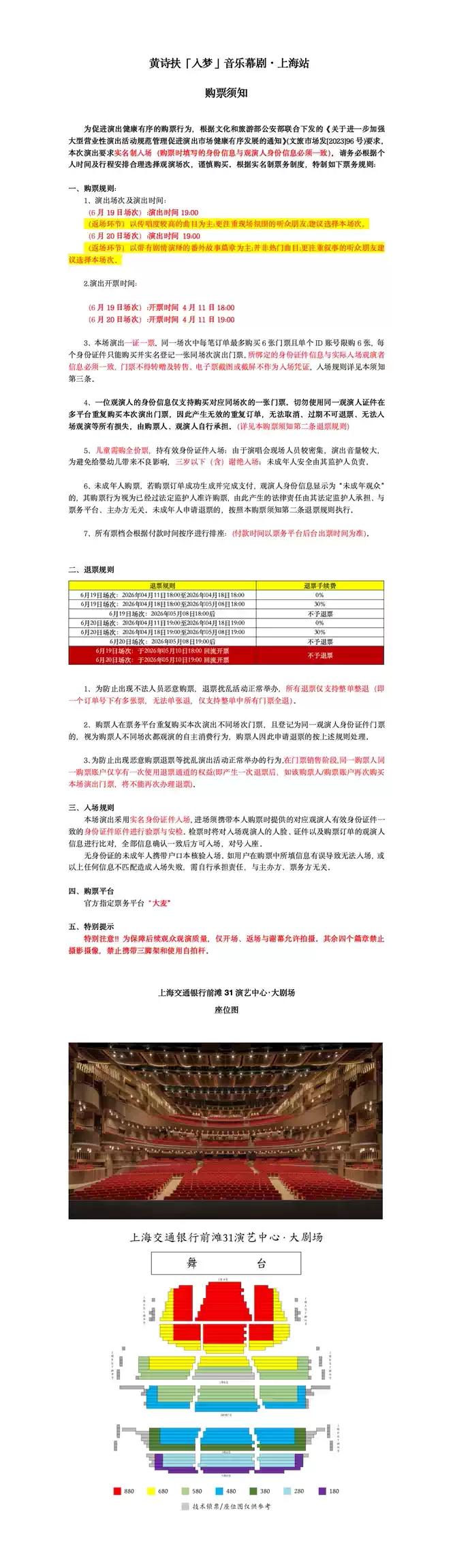 | 座位类型 | 请按门票对应座位,有序对号入座 | 儿童入场提示 | 1.2米以上凭票入场,1.2米以下谢绝入场 |