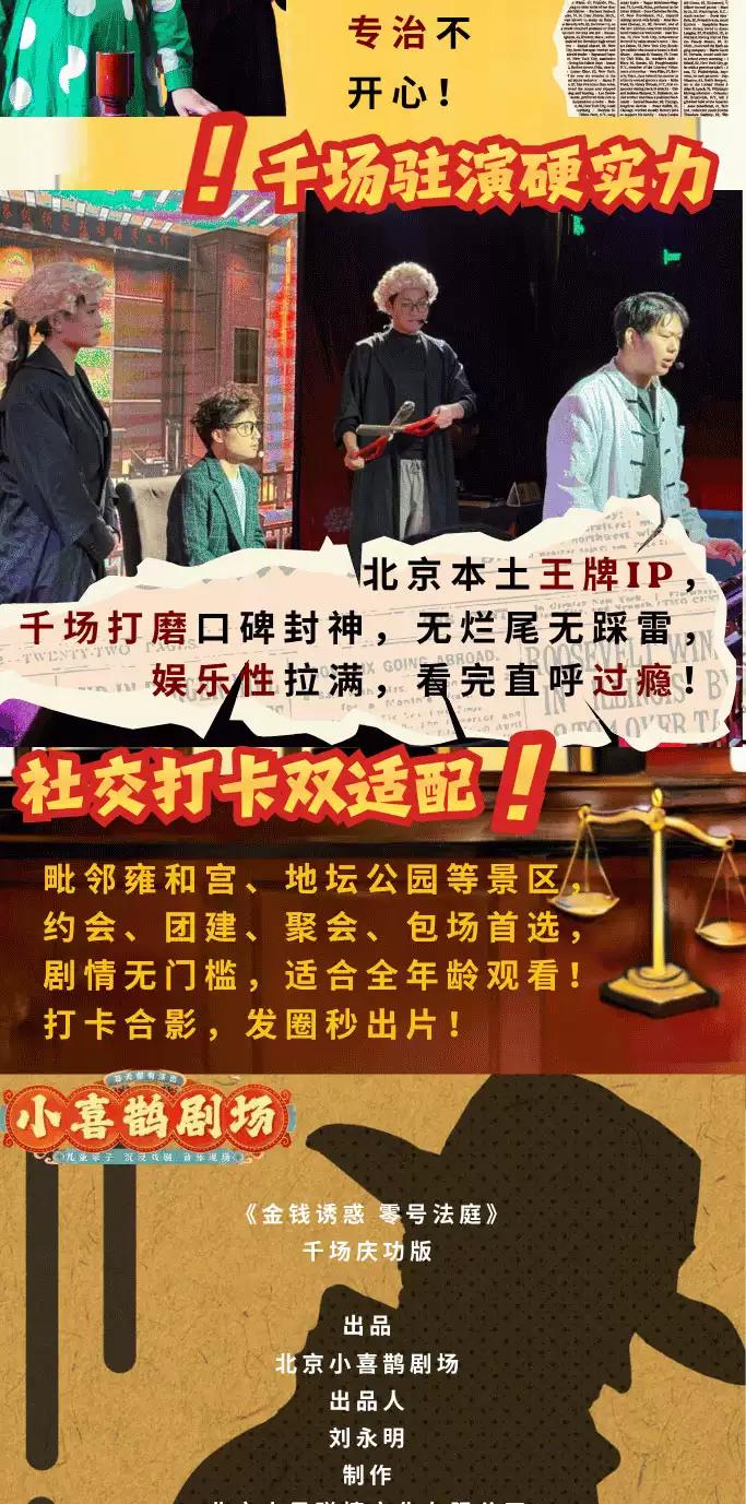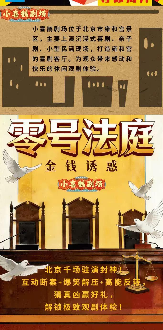 [北京][买贵无忧]小喜鹊剧场|阿加莎式悬疑经典|金钱诱惑之零号法庭| 推理 爆笑 反转 角色扮演