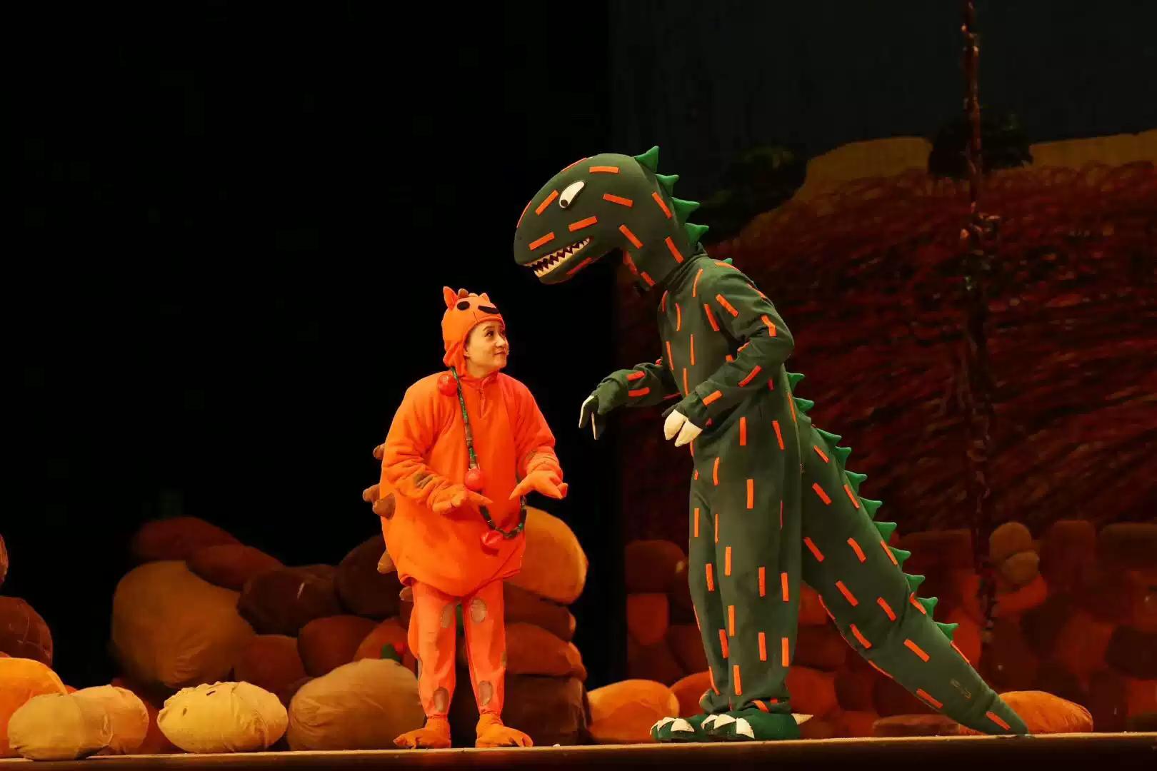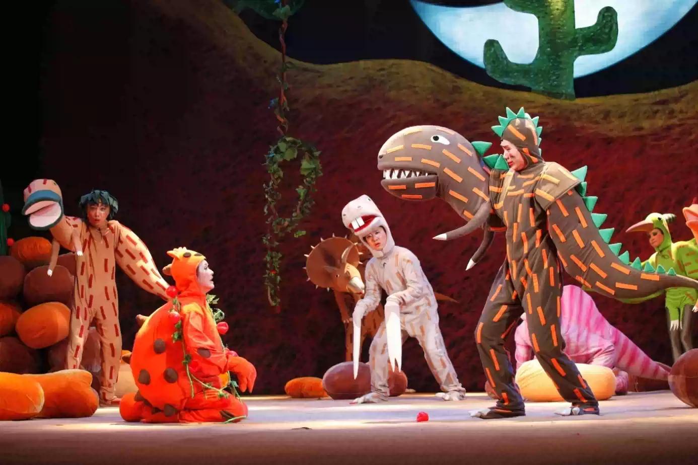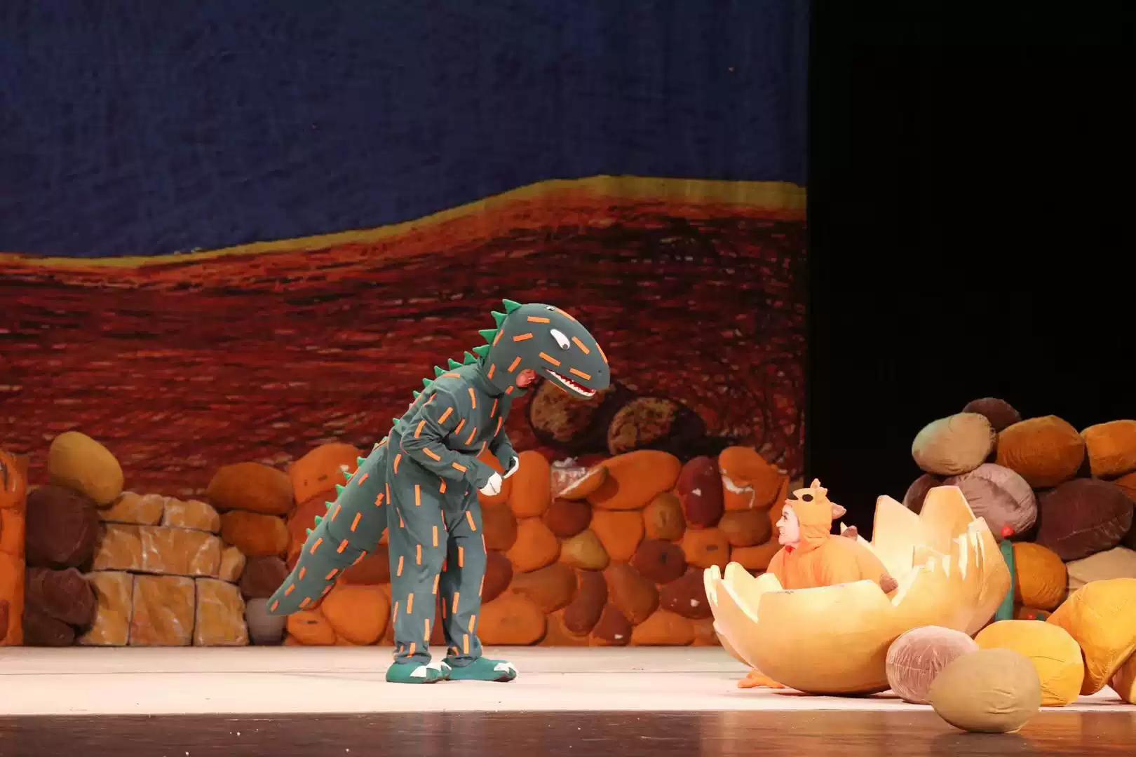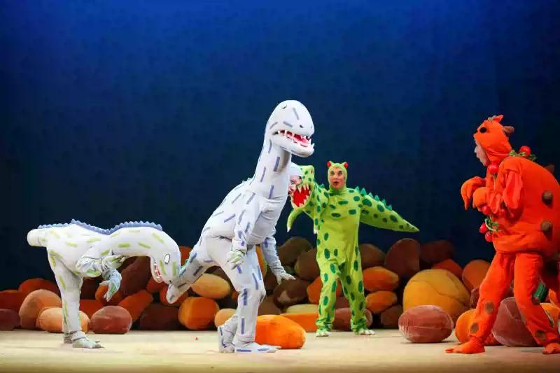 “1……2……3……很好吃!”成了剧中的主角小甲龙“很好吃”的专属游戏,连一向残忍的霸王龙也沉浸在游戏的欢乐中,不知不觉竟然把自己的“食物们”都放走了。“你动了!你输了!”恐龙们憨态可掬的表演,使得现场欢笑不断。 不过剧中两次出现的游戏情节可不仅仅是恐龙们的“自娱自乐”,届时台下的小观众们将会被邀请一起参与其中。和恐龙们一起玩游戏,必将给在场的小观众们带来别样的有趣体验。