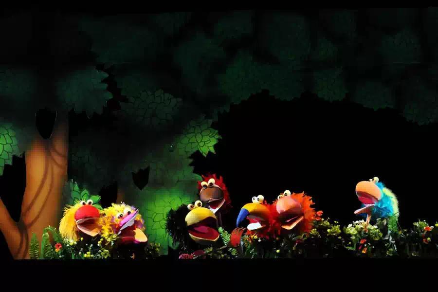这是上海木偶剧团的一个创新剧目,从故事到呈现充满了现代气息,尤其是木偶的造型设计方面采用多种风格样式,有布袋木偶,杖头木偶,还有头顶的大木偶等等。另外,在演出中增加了和小观众的互动环节,寓教于乐趣味化感受海派艺术的魅力所在。