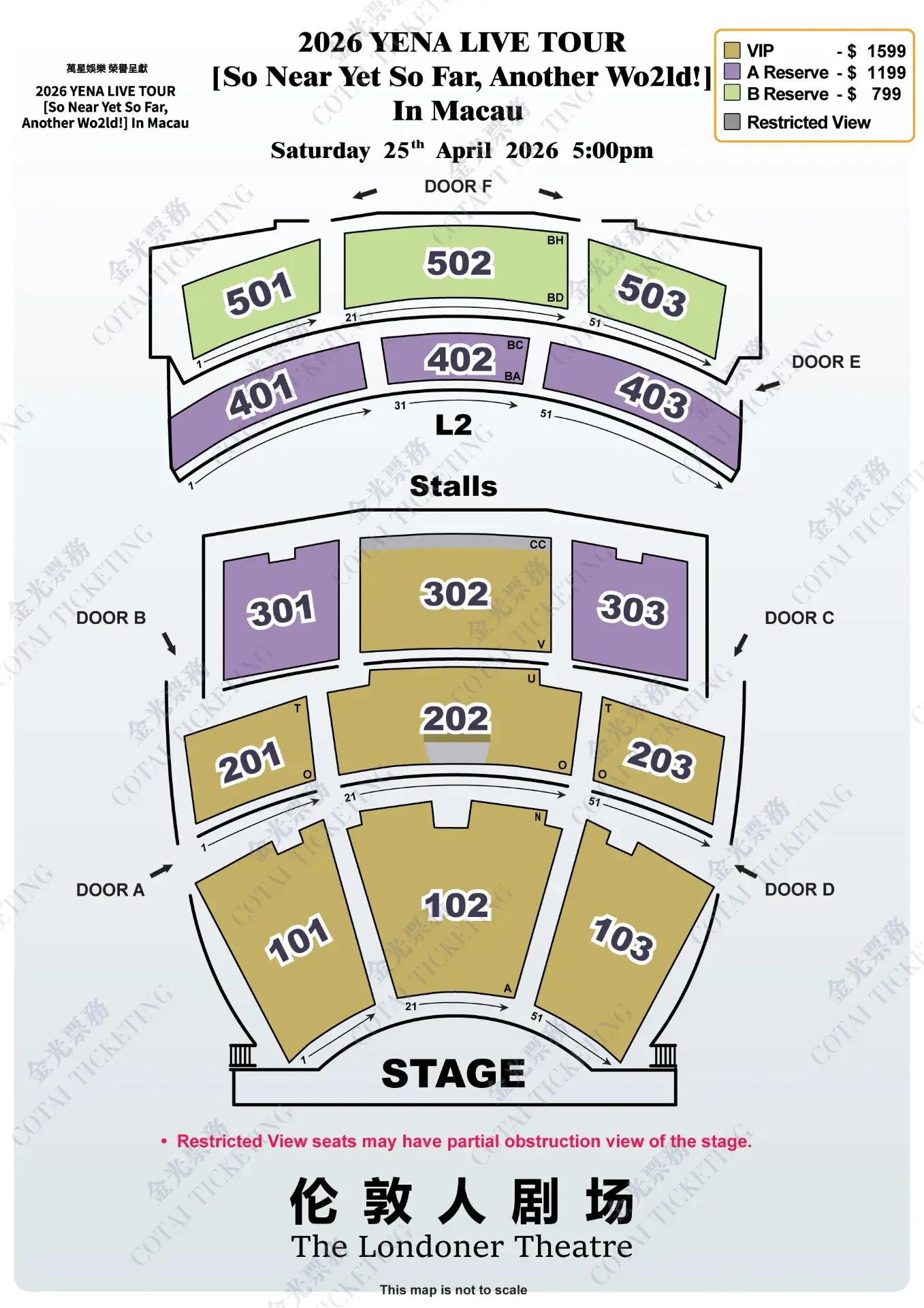 澳门币票价MOP:1599 / 1199 / 799