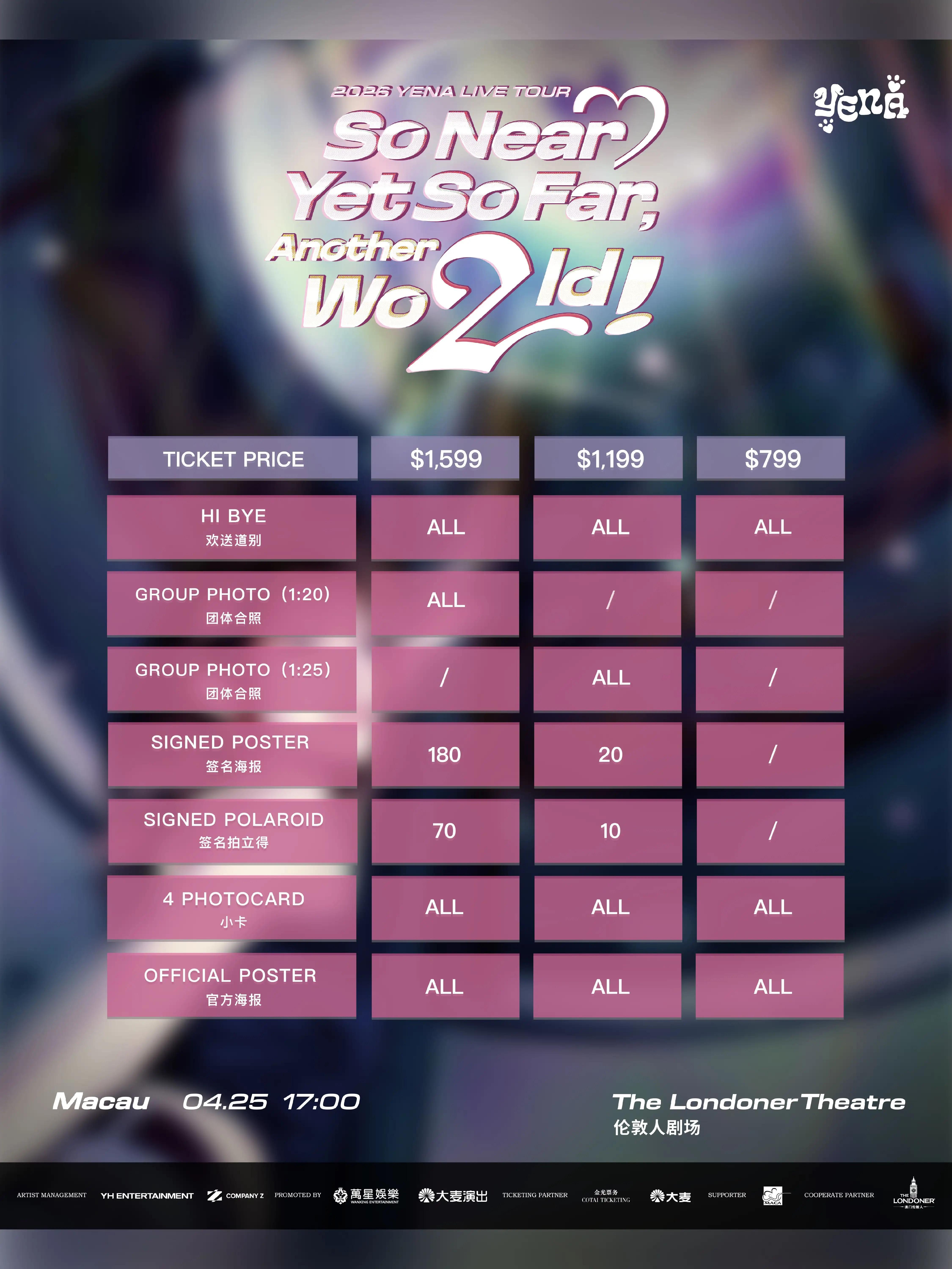 2026 YENA LIVE TOUR [So Near Yet So Far, Another Wo2ld!] In Macau