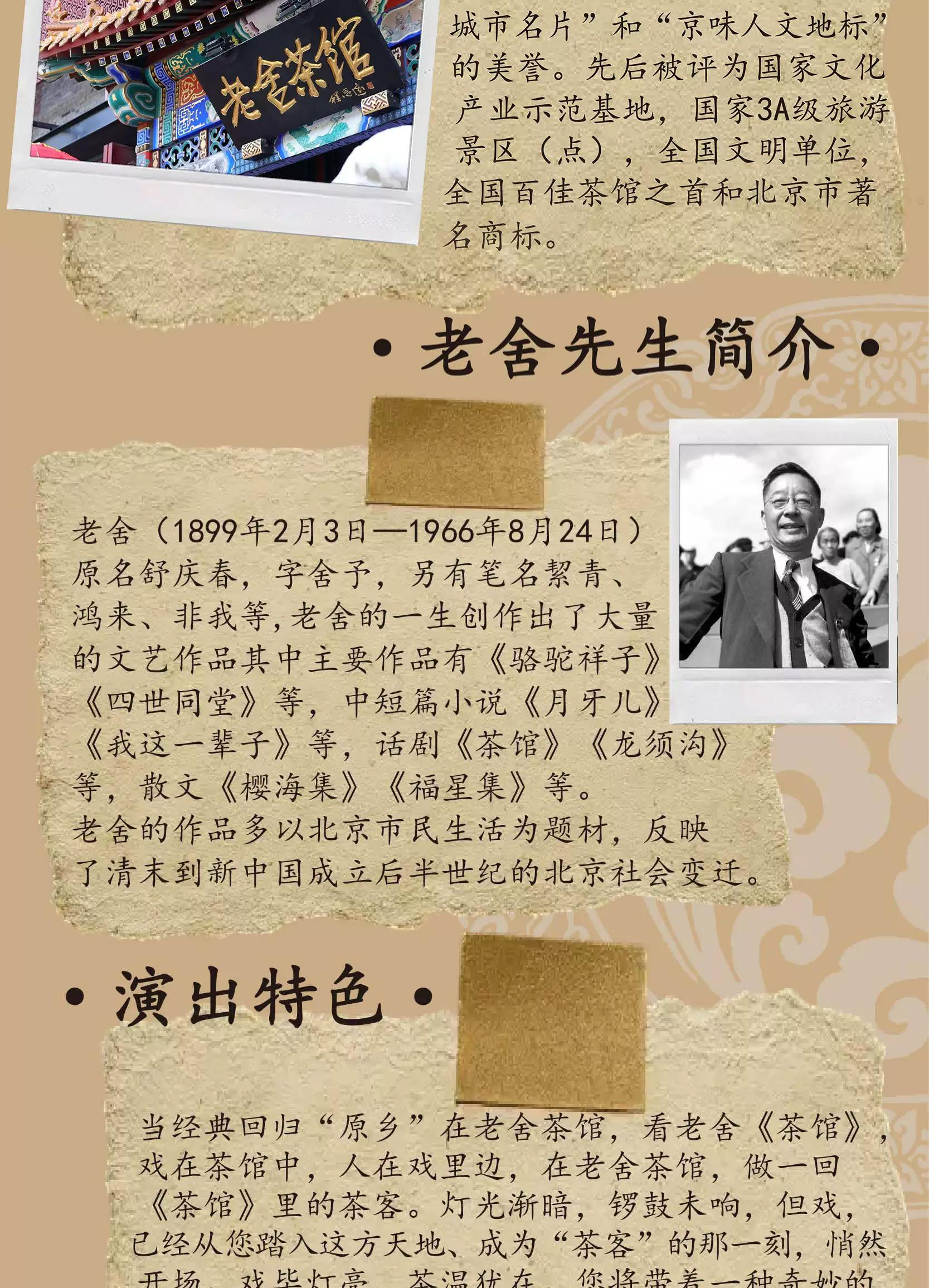 当经典回归“原乡”在老舍茶馆,看老舍《茶馆》,戏在茶馆中,人在戏里边,在老舍茶馆,做一回《茶馆》里的茶客。灯光渐暗,锣鼓未响,但戏,已经从您踏入这方天地、成为“茶客”的那一刻,悄然开场。戏毕灯亮,茶温犹在。您将带着一种奇妙的恍惚离场,刚才经历的是戏剧,还是一场浓缩的人生?