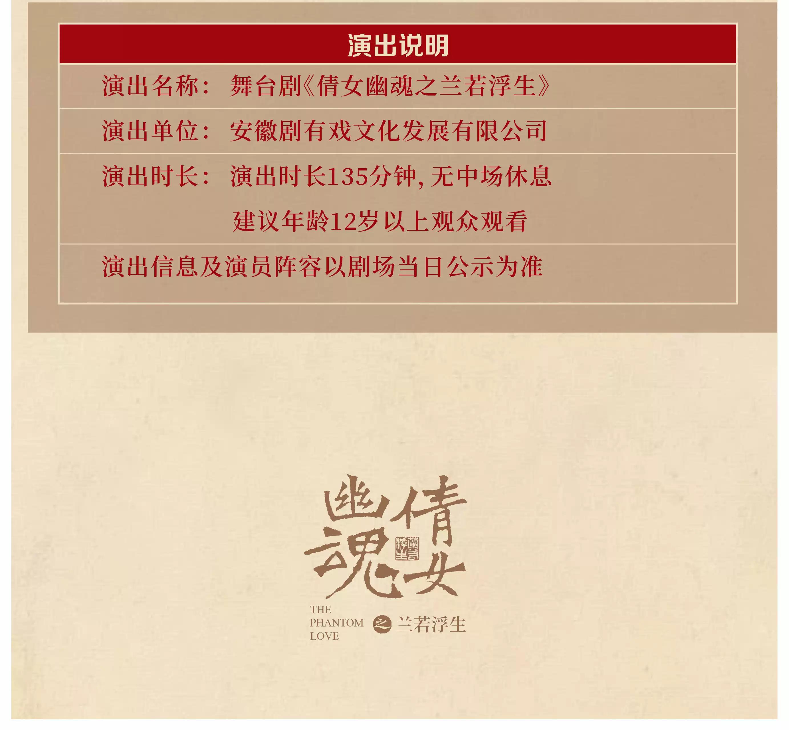 3、本场演出时长135分钟(无中场休息)!演出可能存在迟到观众管控,具体管控时间以现场为准,需遵守管控要求在工作人员引领下入场。