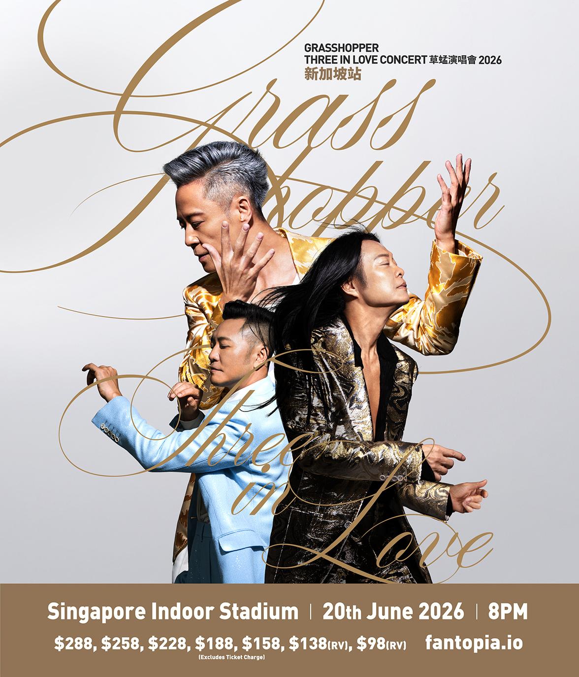华语乐坛殿堂级组合草蜢迎来成军 40 周年里程碑,重磅推出《GRASSHOPPER THREE IN LOVE CONCERT 2026》巡演。