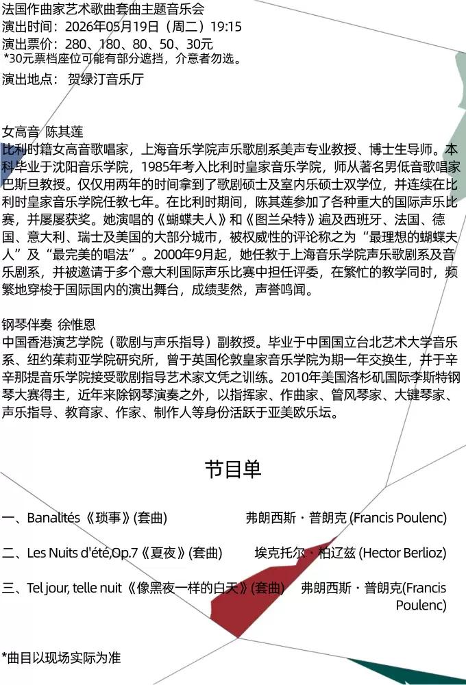 [上海]法国作曲家艺术歌曲套曲主题音乐会