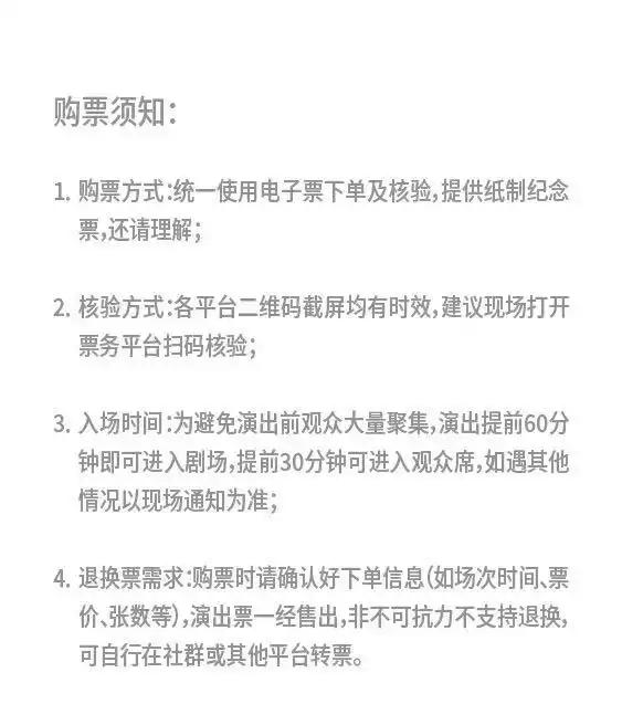 购票须知:1. 1人1票,1.2米以下儿童谢绝入场;2. 票品为有价证券,非不可抗力不支持退换
