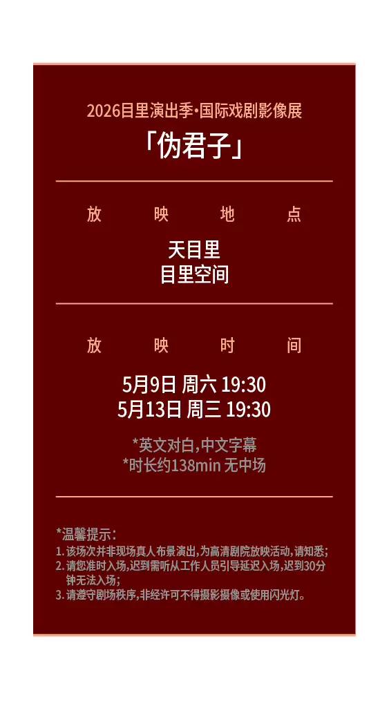2026目里演出季·国际戏剧影像展:剧目为高清放映项目,无真人演出,观影环境见下图。