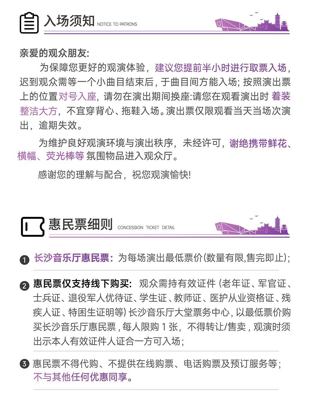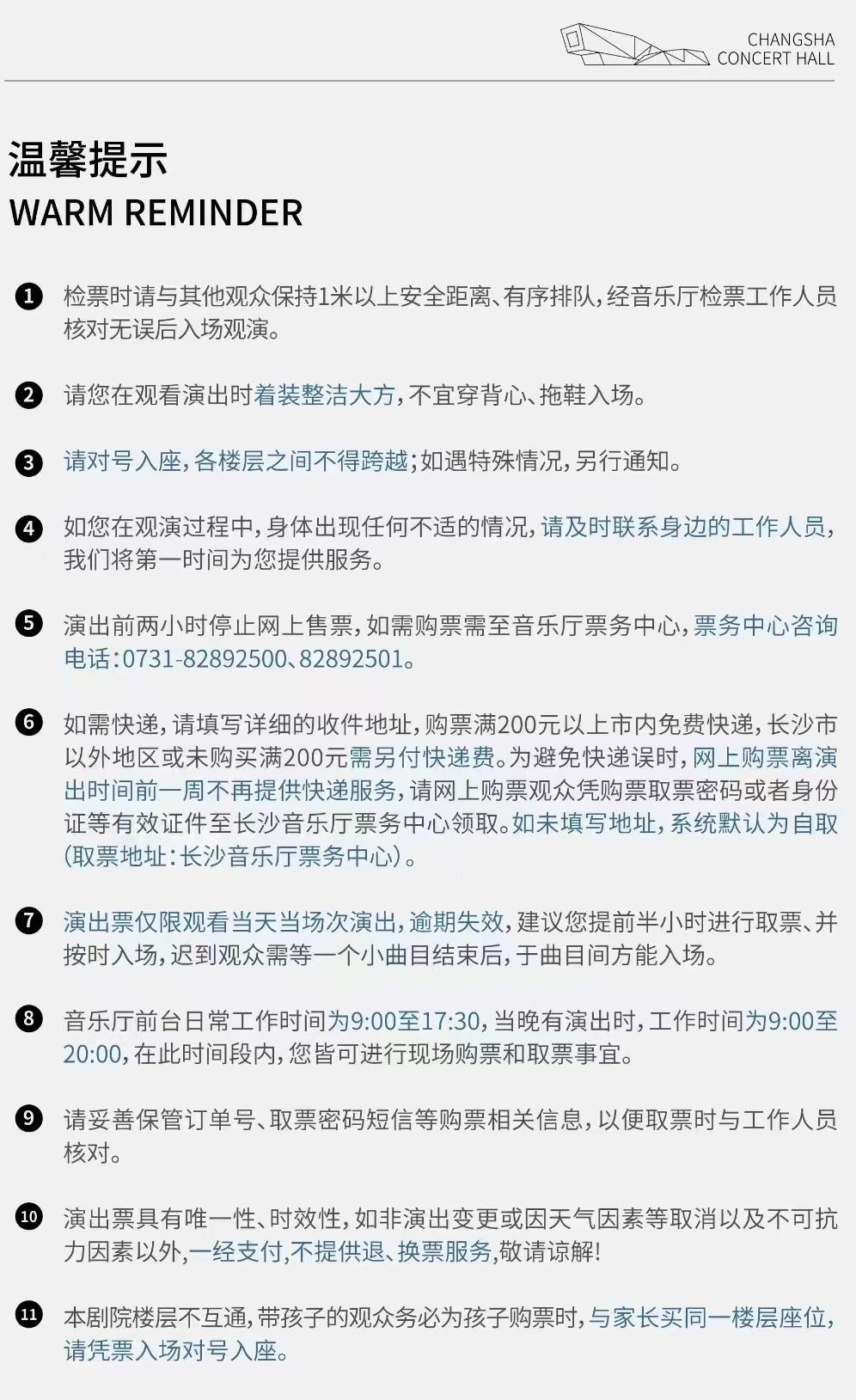 1米以下儿童谢绝入场,其余观众凭票入场,对号入座。 迟到观众请在工作人员的引导下,轻声、快速地就近入座。