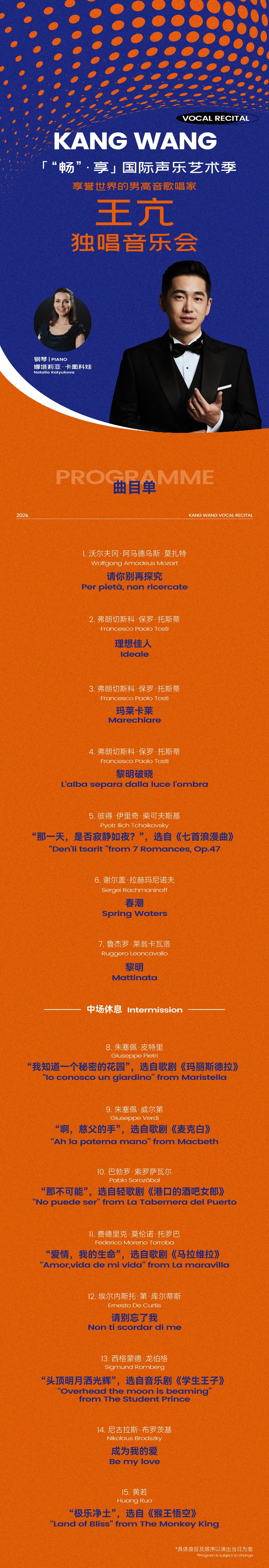 [长沙]享誉世界的男高音歌唱家-王亢独唱音乐会