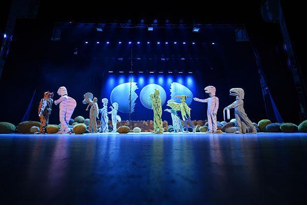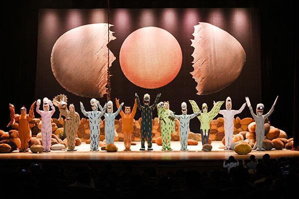 拉一下开关,月亮灭了;使劲跺一下脚,地上喷出气体来;红果子树倒着生长从天而降;太阳从蛋壳里孵出来;天上下起雨,掉下的雨滴却是蓝色的光斑……觉得不可思议么?而这恰恰正是《你看起来好像很好吃》的舞台上发生的事情。白垩纪险象环生、令人生畏的恐龙时代,如今在台上变成了一个可爱并且极富想象力的童话乐园。