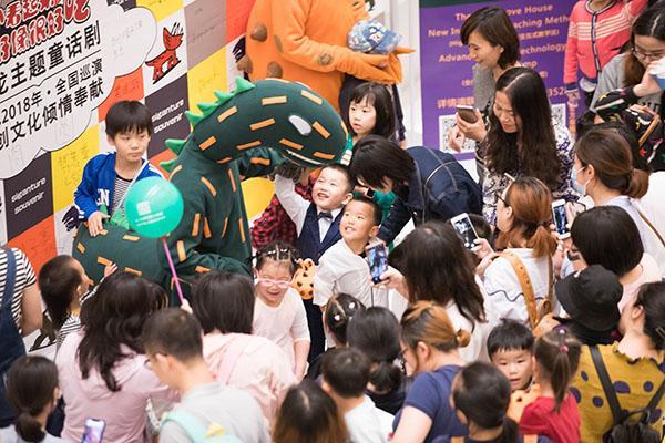 恐龙与小观众零距离亲密接触