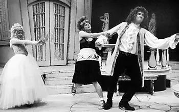 场景乘法:编剧特别聪明地巧用“舞台事故”,给剧情增加了无数合理的意外,并且在前两幕已经出离复杂的情况下,第三幕将整个布景翻转过来,给大家呈现了演出后台加倍的混乱。