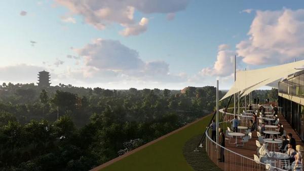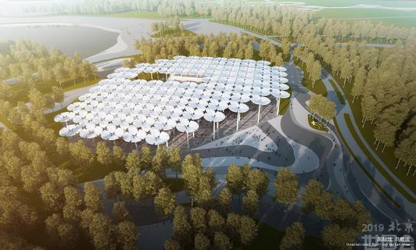 演艺中心将在会时承担开闭幕式等大型活动的功能,它宛如一只彩蝶驻足在妫湖之滨,更有"如云萦绕山间,如溪穿梭林间"的一色台、华夏四方名花盛放的九州花境、翠影红霞映朝日的千翠池、"花伞彩荫浓聚,万国佳客举杯"的丝路花语;正可谓永宁高阁揽胜景、天田妫汭蝶飞舞,北京世园会园区将以其得天独厚的自然景观及独具匠心的人工设计,使游客寄情山水园艺之中而流连忘返。