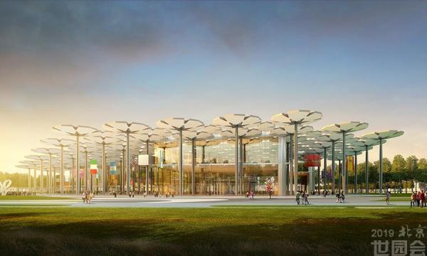 **馆在北京世园会会期承担世界各国、**组织室内展览以及举办**园艺竞赛的功能。它由94把花伞构成,如同一片花海飘落在园区里。无论是在高空俯瞰,还是在伞下信步,游客都会被这一片**的花海所吸引而流连忘返。当夜幕降临,花伞叶片上的投射灯将会为场馆营造出多姿多彩的夜景。