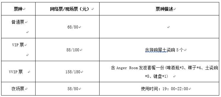 | 服务费说明 | 为了给您提供便利的在线购票服务,票牛为此投入大量的平台技术支持、运营维护支持,并联合平台入驻商家、第三方在线支付服务商、第三方合作商等合作方为您提供服务,基于前述平台成本及合作方服务费用,票牛向您收取不超过票款5%的平台服务费(最高不超过400元)。 票牛收取的平台服务费,主要可能包括如下内容:1.票牛的线上平台和软件系统开发维护成本。2.支付宝、微信等第三方支付服务商收取的支付手续费用。3.物流公司收取的票品寄送费用(如纸质票)。4.客户服务成本以及短信、电话等通道费用。5.为用户提供购票保障服务对应的运营与管理成本。6.其它为完成用户订单必须的相关服务成本、人员成本等。 | 座位类型 | 现场不设座位,均为站席观演 |