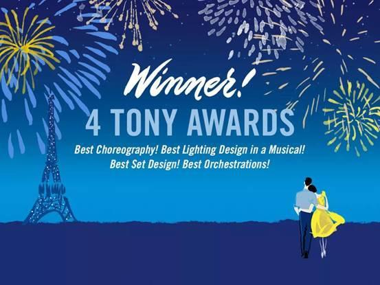 音乐剧《一个美国人在巴黎》2014年在巴黎首演;2015年登上百老汇舞台,在百老汇一举拿下了包括* 佳编舞、* 佳舞美设计、* 佳服装设计、* 佳灯光设计在内的四项托尼大奖。