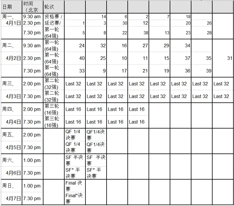 桌次安排将在赛前一天由赛事总监确定并发布。