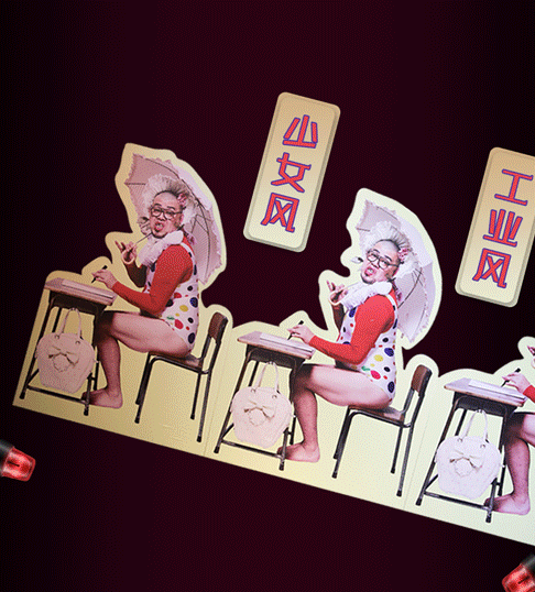 下一秒身穿洛丽塔的胡渣大叔就开始向你嘟嘴卖萌,时不时还抛个媚眼,