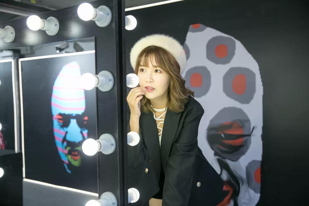 镜面一侧反射出墙上的鬼脸,另一侧是小仙女们梳妆打扮的认真模样,
