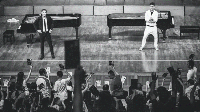 《钢琴大斗法》至今已在欧洲、美国及亚洲各地巡回表演达百场,每场演出座无虚席,全因《钢琴大斗法》极尽视听之娱,是一场非同一般的古典音乐会。