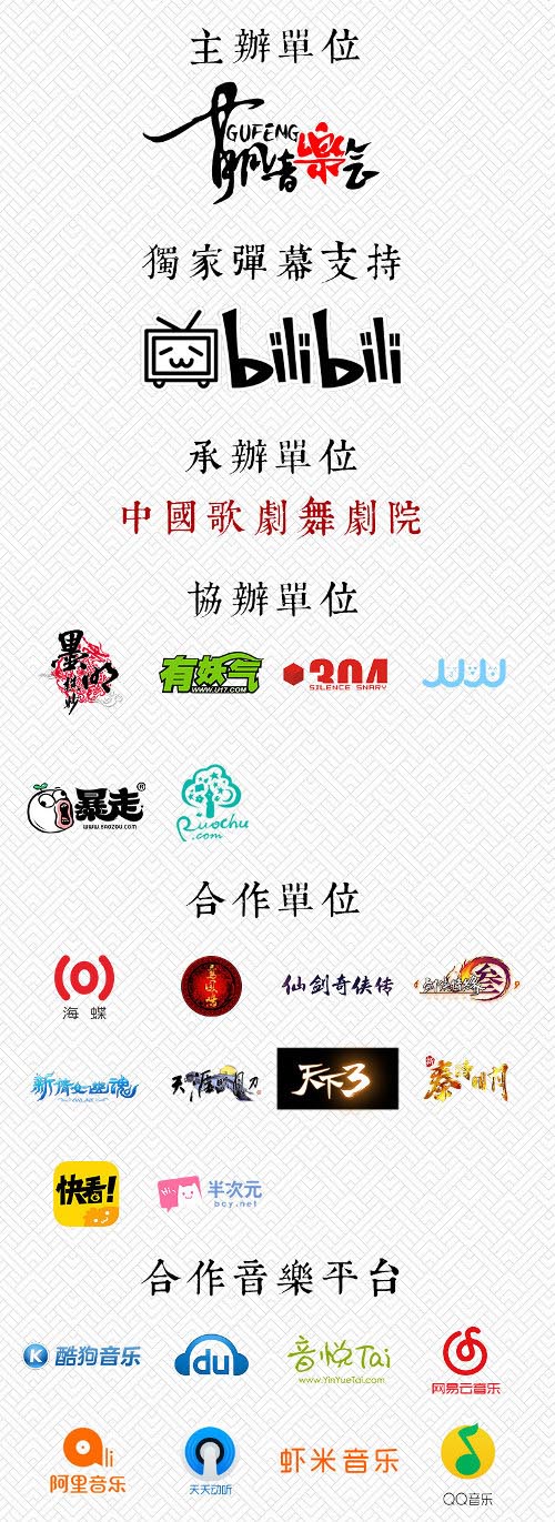 【合作单位】:海蝶音乐、鸾凤鸣原创音乐社团、仙剑奇侠传、剑侠情缘网络版叁、新倩女幽魂、天涯明月刀ol、天下3、快看漫画、新秦时明月手游