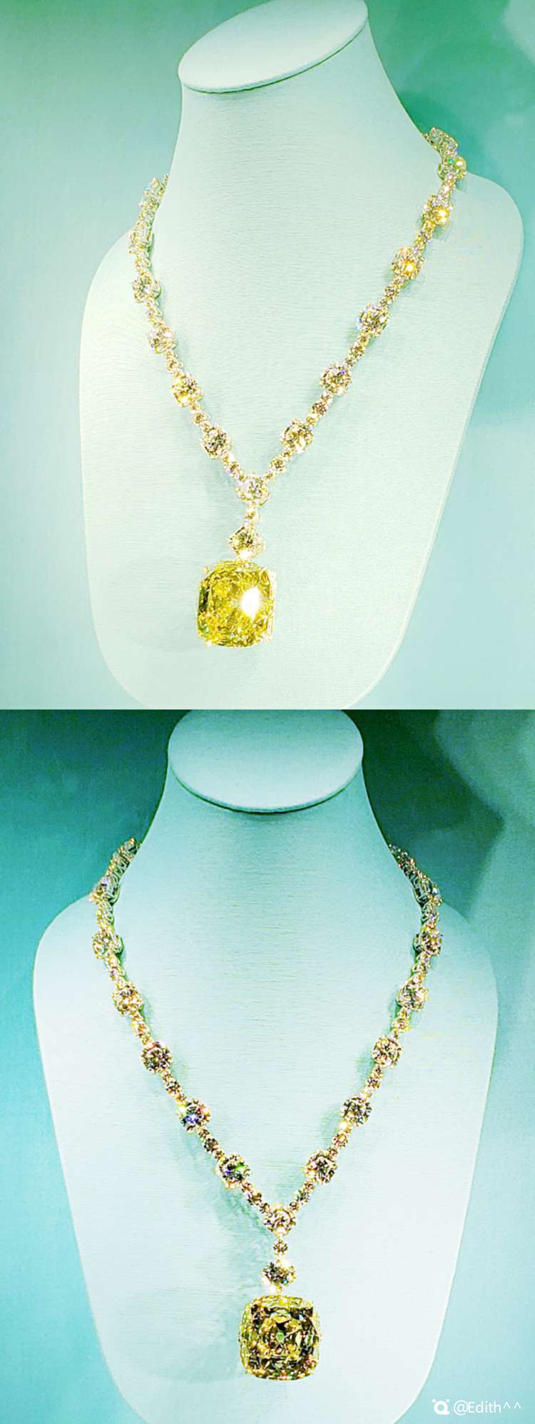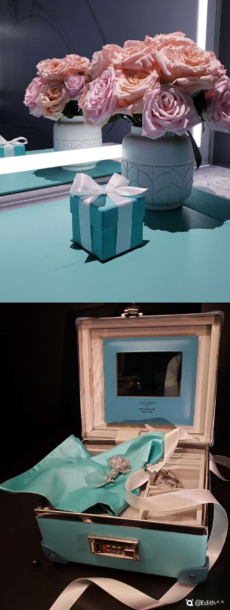 有一种蓝色,叫做Tiffany蓝~ 据说,每个女生都渴望收到蒂芙尼这个标志性的礼物盒… P.S. P9赫本曾佩戴过的传奇黄钻项链,闪到相机完全无法对焦,拍出来都是罗马纹[捂脸]