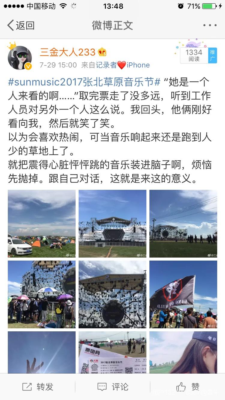#sunmusic2017张北草原音乐节#票牛网上很顺利地取到了票。 “她是一个人来看的啊……”取完票走了没多远,听到工作人员对另外一个人这么说。我回头,他俩刚好看向我,然后就笑了笑。还遇到了一群同龄人,他们买了假的黄牛票,庆幸自己选对了。