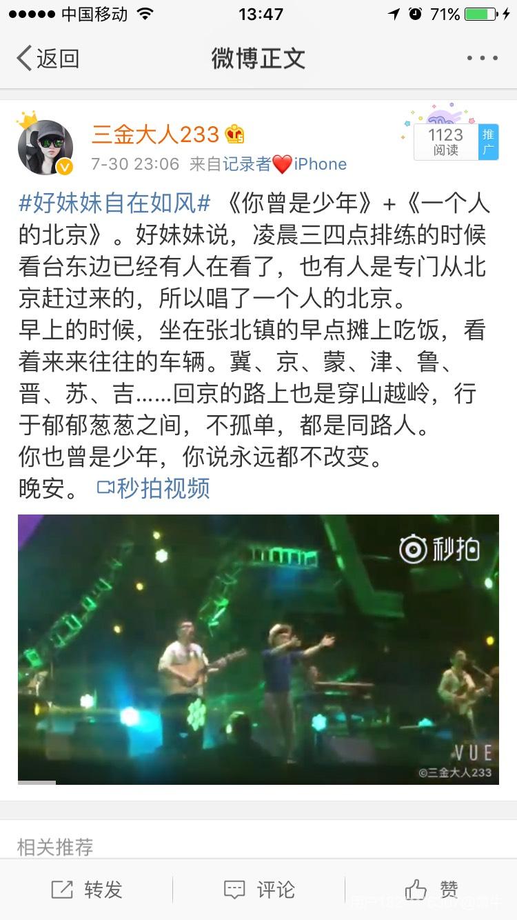 好妹妹说,凌晨三四点排练的时候看台东边已经有人在看了,也有人是专门从北京赶过来的,所以唱了一个人的北京。早上的时候,坐在张北镇的早点摊上吃饭,看着来来往往的车辆。冀、京、蒙、津、鲁、晋、苏、吉……回京的路上也是穿山越岭,行于郁郁葱葱之间,不孤单,都是同路人。谢谢票牛网。