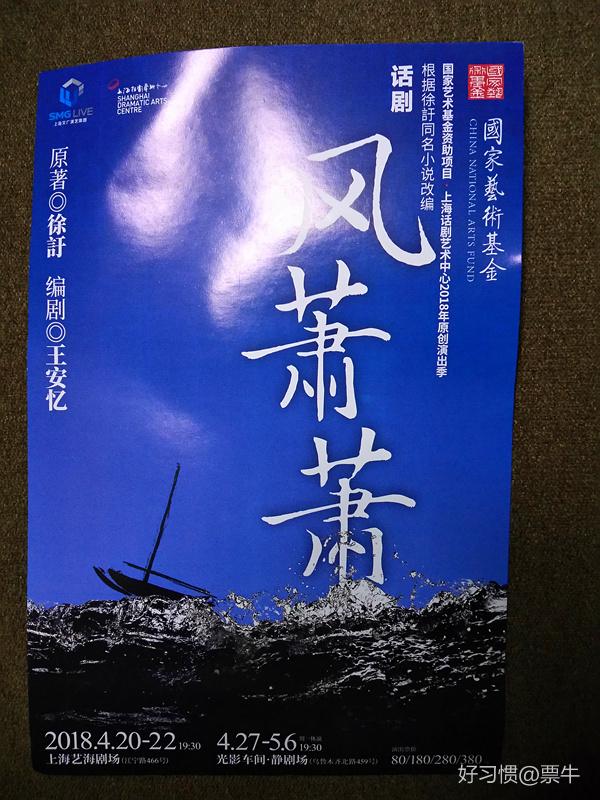 国家艺术基金资助项目,上海话剧艺术中心2018年原创演出季话剧《风萧萧》根据徐訏同名小说改编。导演:徐紫东,编剧:徐訏/王安忆,主演:袁野/马青利/陈山/刘琦/王梓/麦朵/朱晔/杨景然/王维帅。2018.04.27-2018.05.06在光影车间·静剧场演出。