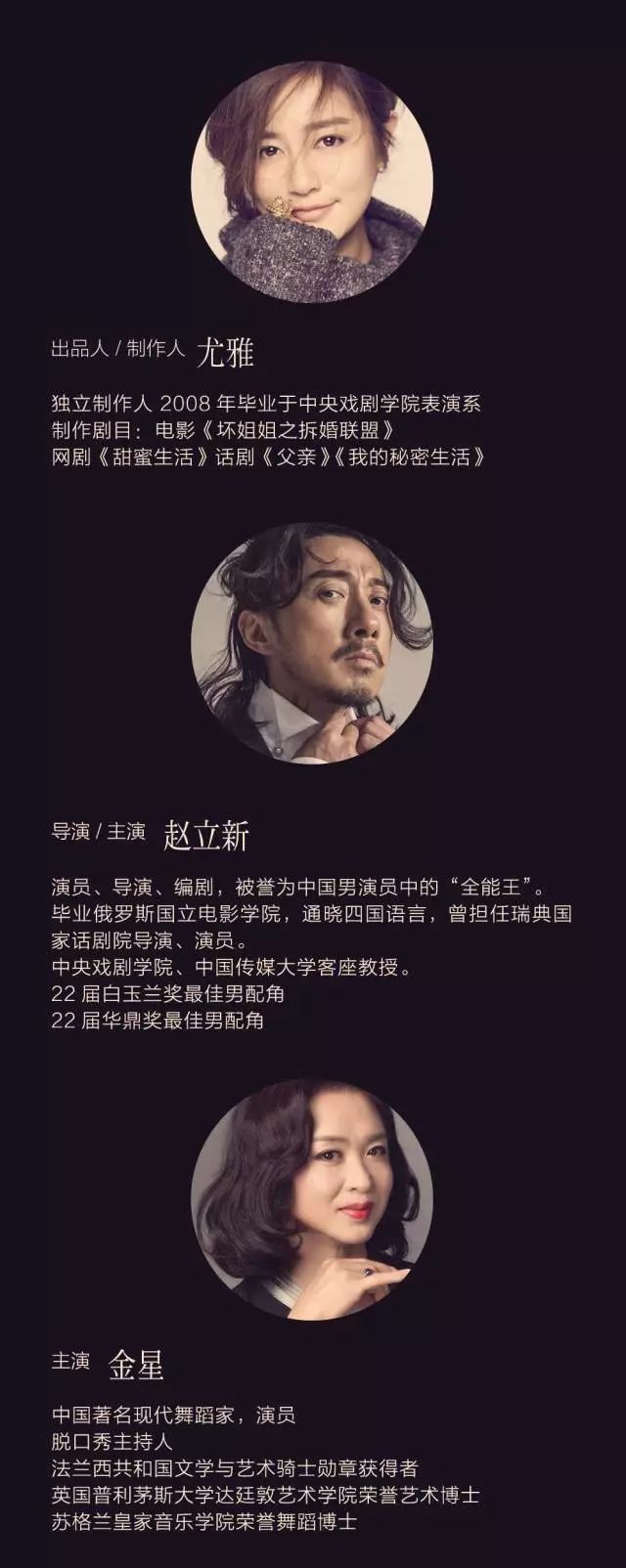 至于碰到金星呢,我觉得真的是就在那一刻,当时喝了一杯52度的酒,然后脑子就清醒了,然后就觉得自己冷静多了,于是我特别慎重做出一个决定,我要邀请她,邀请她来演出这部倾注了我的爱的作品。