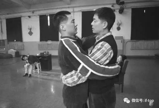 《等待戈多》老版的两位演员是观众熟悉的濮存昕和陈建斌。他们既要演“戈多”里的两个流浪汉,分别又演出了《三姐妹》里玛莎爱慕的军官韦尔希宁,以及伊莉娜的追求者土旬巴赫男爵。(排练照1998年 摄影:李晏)