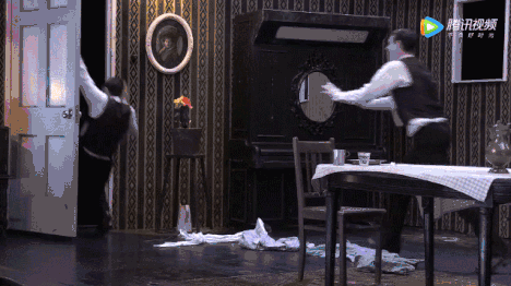 幽默风趣的音乐结合令人咋舌的肢体,让观众完全沉浸在这个黑色喜剧当中。演员的白色妆容,搭配绅士得体的黑白西装,加上整个"机关重重"的冷色调舞美布景,把默片时代的黑白印象、胶片之感和幽默风趣展现无疑,让你突然闪现出卓别林的经典格调…