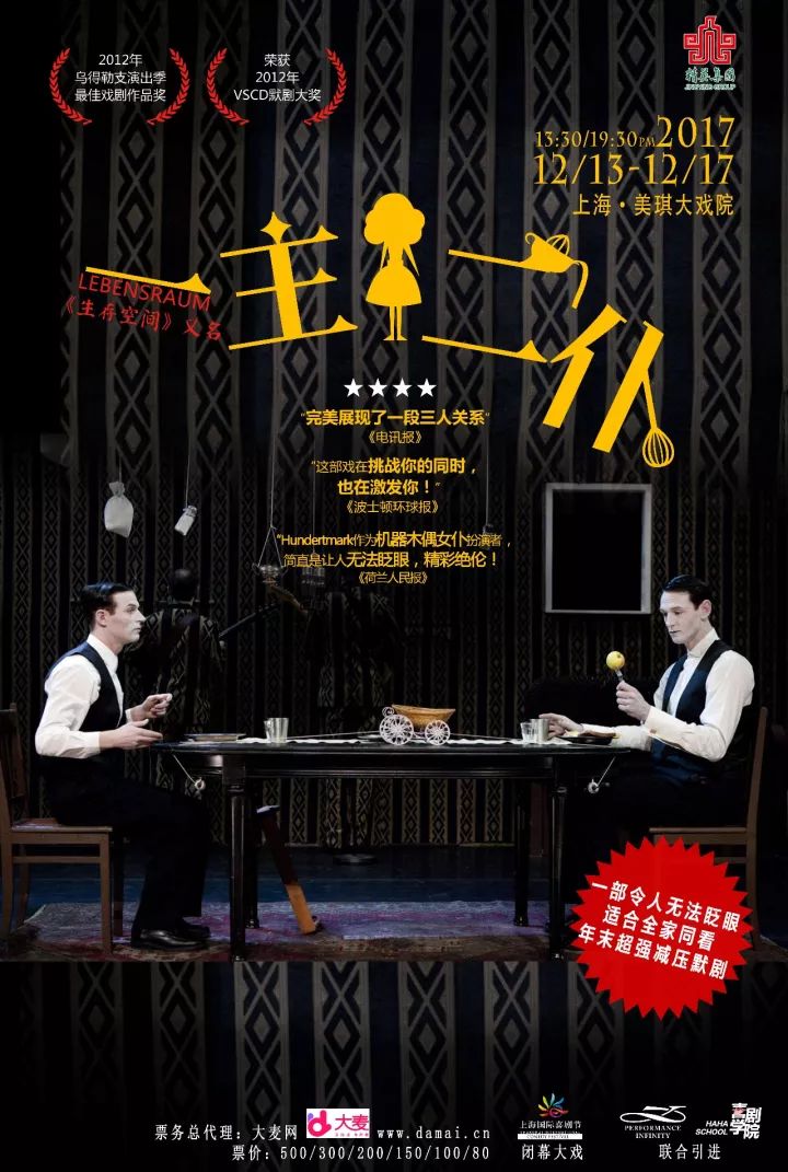 由来自瑞典的天才默剧导演Jakop Ahlom创作的《一主二仆》即是一次向巴斯特·基顿的致敬,一方面Jakop Ahlom将在舞台上重生巴斯特·基顿的黑白印象与幽默风趣,一方面《一主二仆》又延续了《稻草人》的“机械未来幻想”——剧中人不仅发明了各种家庭机械,还发明了一位机械女仆木偶……