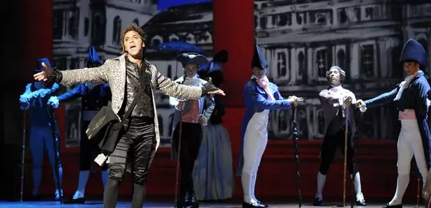 在这部剧中,莫扎特甫一亮相就充满了叛逆感,他从一大群姑娘的裙摆间唱着歌钻了出来,挨个亲吻她们,甚至还亲了一下旁边的侍卫小哥。