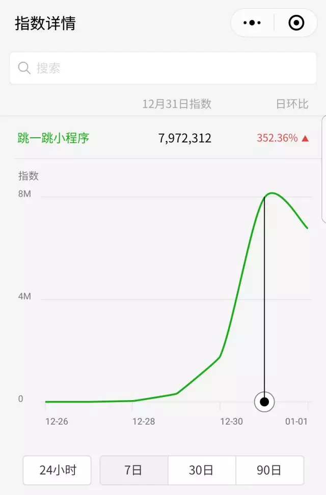 800万人在线使用“跳一跳”,数据来自“微信指数详情”)