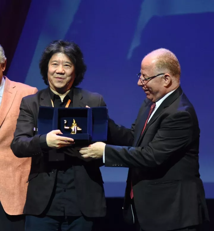 导演孟京辉从埃及文化部长的手中接过奖杯