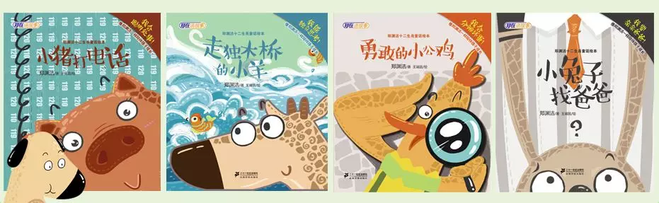 《小兔子找爸爸》、《小猪打电话》、《走独木桥的小羊》、《勇敢的小公鸡》