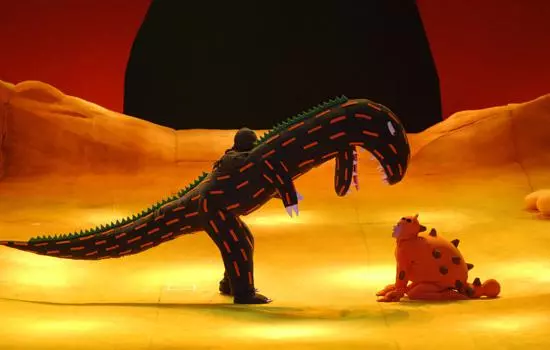 拉一下开关,月亮灭了;使劲跺一下脚,地上喷出气体来;红果子树倒着生长从天而降;太阳从蛋壳里孵出来;天上下起雨,掉下的雨滴却是蓝色的光斑……觉得不可思议么?而这恰恰正是《你看起来好像很好吃》的舞台上发生的事情。白垩纪险象环生、令人生畏的恐龙时代,如今在台上变成了一个可爱并且极富想象力的童话乐园。