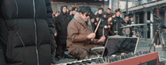 人们一边打着节拍,