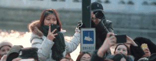 突然在人潮涌动的街头出现了。