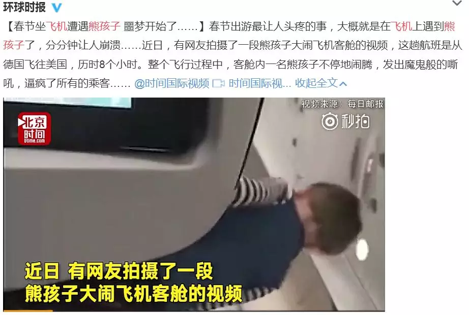 尖锐的叫声戴上厚重大耳机也无法抵挡,身后的椅背被“流星脚”疯狂踩踏,手上的iPad或零食被任意玩弄不问自取,要是不给还向父母撒泼哭诉……熊孩子的吵闹,是人们在影院、高铁、飞机里最怕遇上的情况之一了,更怕的是,好言向熊父母相劝,换来的是往往是不以为然甚至恶言反怼,这更是让人糟心气愤。