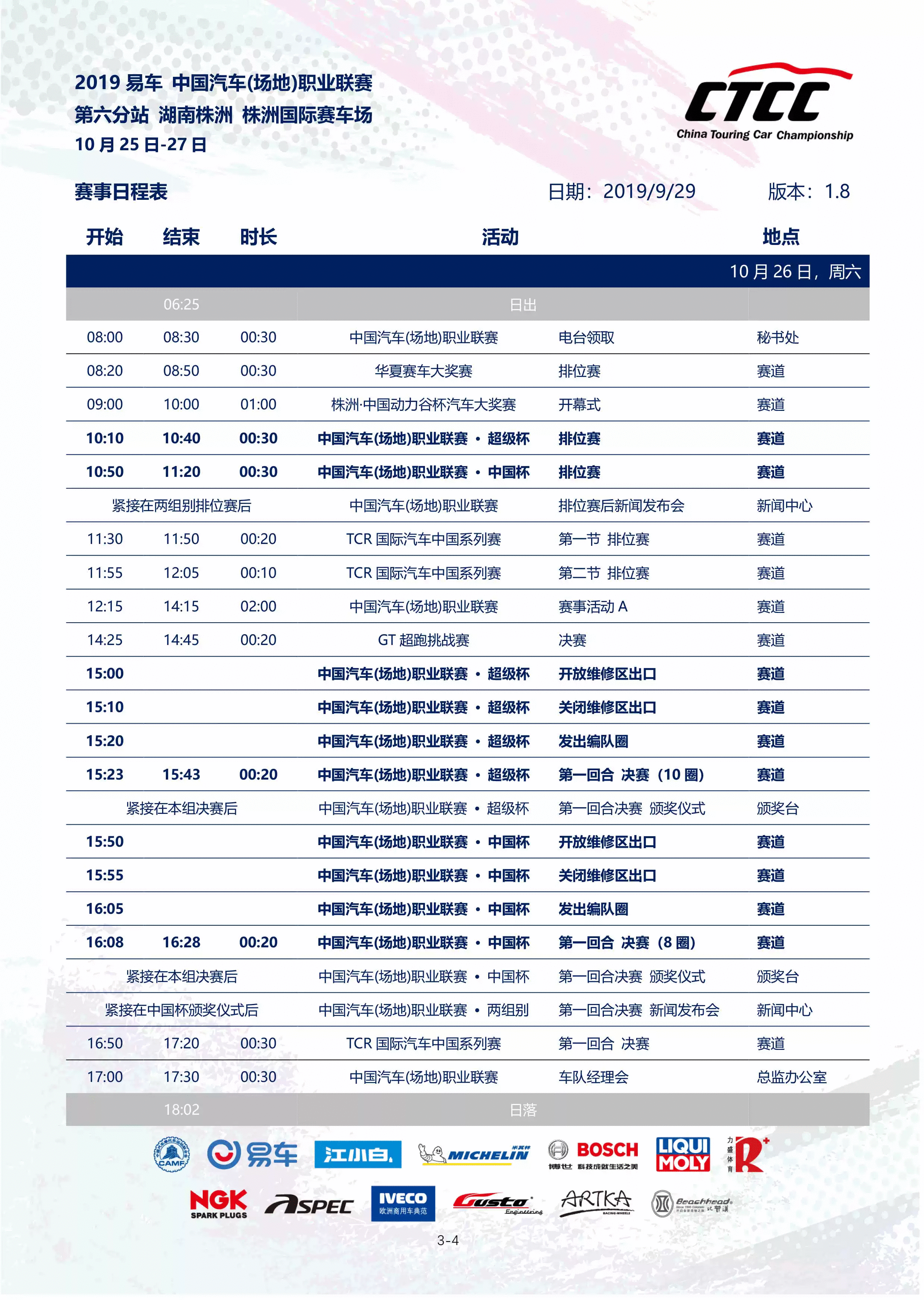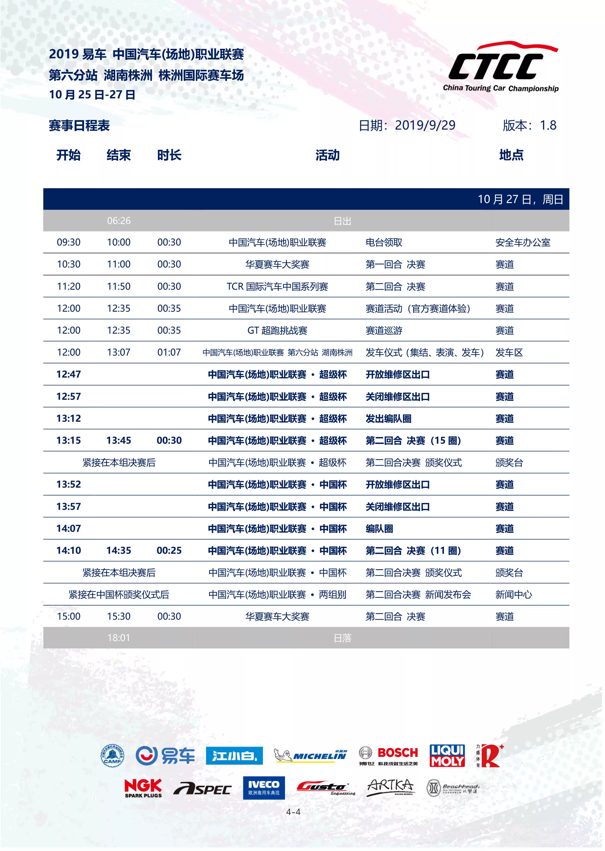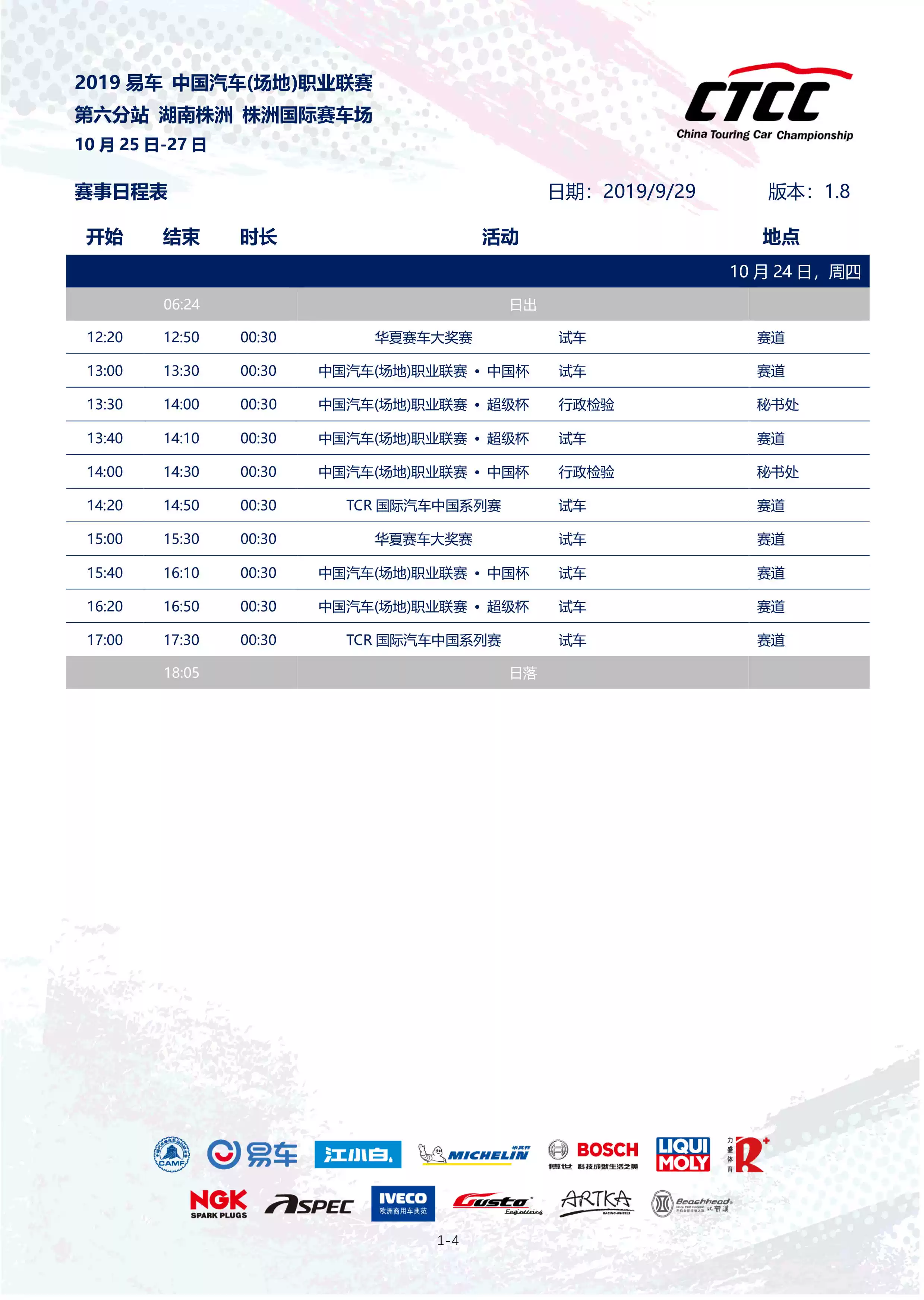 CTCC中国汽车(场地)职业联赛为代表的系列赛事